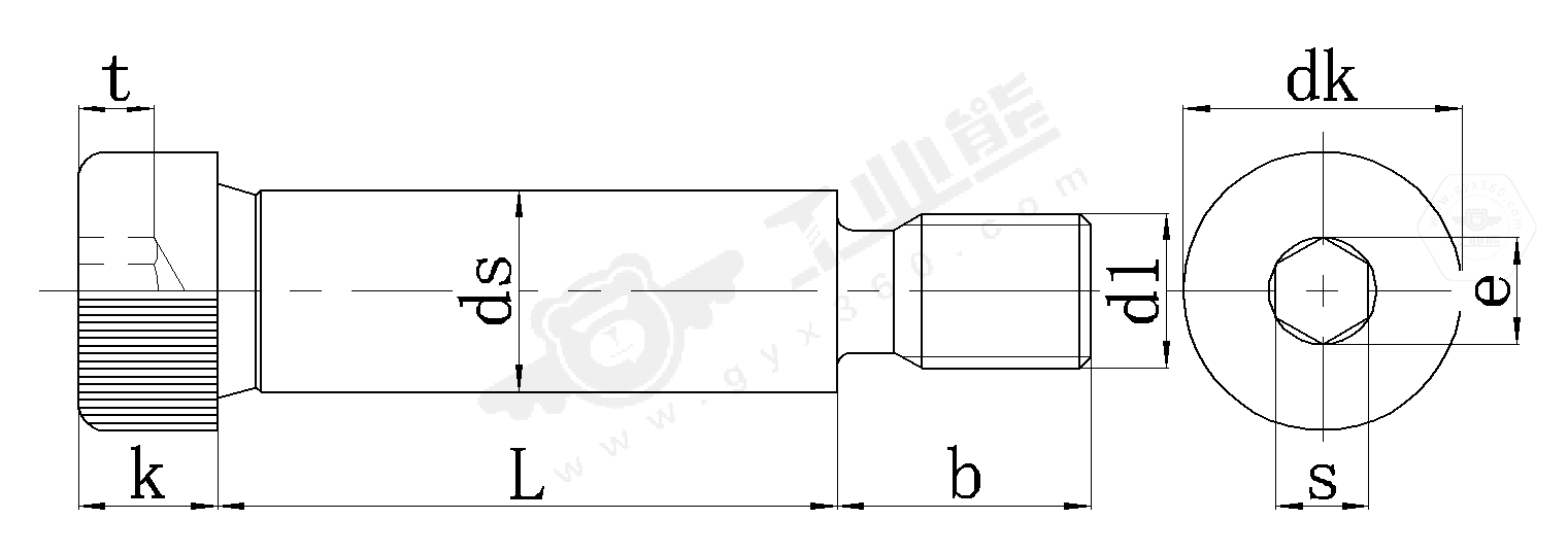 內六角圓柱頭軸肩螺釘是一種集定位與緊固功能于一體的精密緊固件,其結構分為螺紋段(緊固)和光桿軸肩段(定位),其獨特設計在于頭部下方的軸肩結構——光桿直徑顯著大于螺紋直徑。其頭部采用內六角驅動設計,軸肩直徑(ds)通常大于螺紋直徑(d),例如M8螺紋對應ds=10mm的光桿。軸肩螺釘這種差異化設計有效解決了傳統(tǒng)螺釘易松動、定位精度不足的問題。
